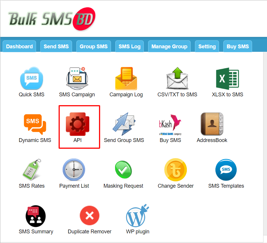 For demonstration we used Bluksmsbd.com . You can use your own SMS gateway as per as your gateway documentation and setup their required parameters and values . For Bulksmsbd, click on the API menu from dashborad for their documentation .