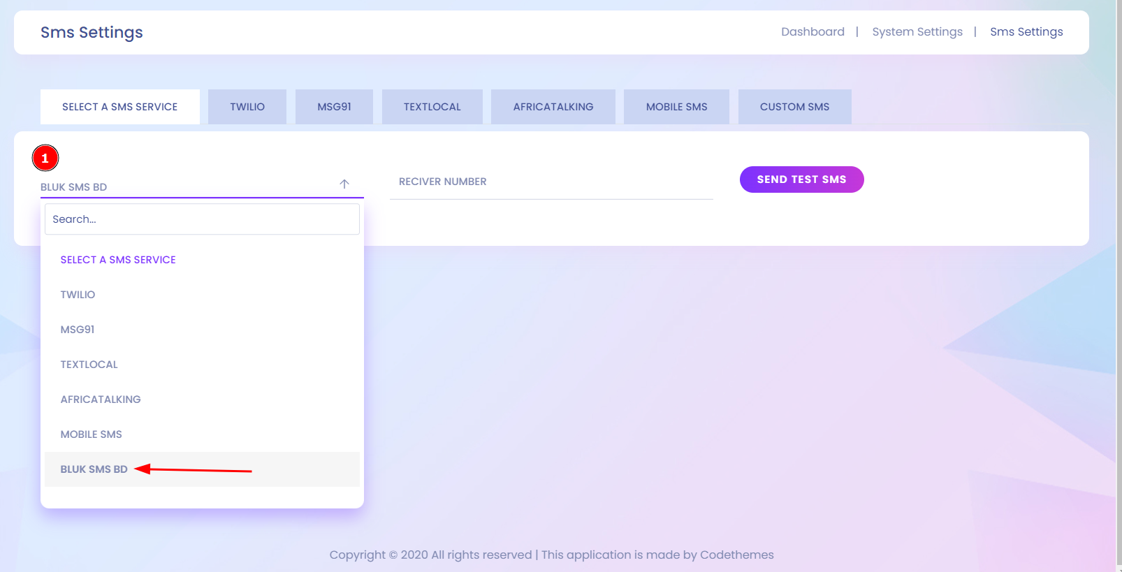 After successfully saving you can find these gateway under Select A SMS Service Tab drop-down list . Then you need to selected your gateway as Bulk Sms Bd (1) .